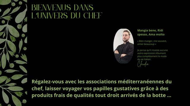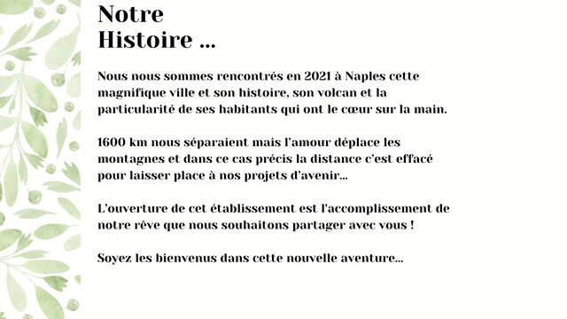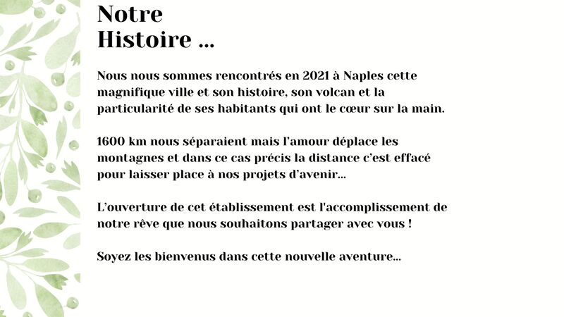 Savourer nos antipasti authentiques, nos desserts maison, et nos glaces artisanales dans une atmosphère chaleureuse et authentique.